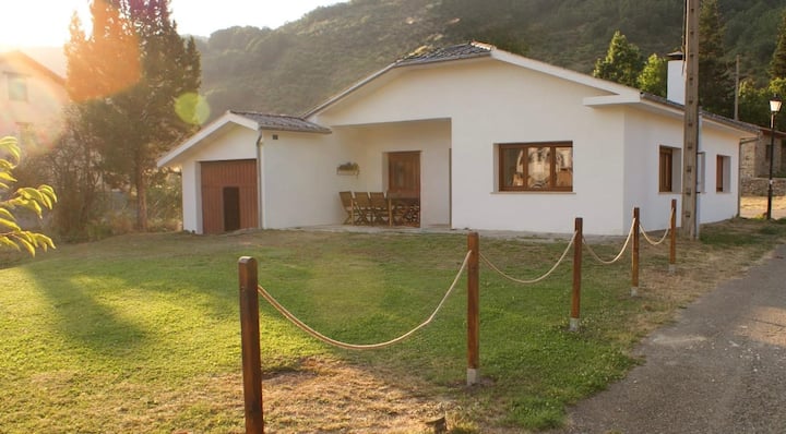 Rodeado de césped, el refugio cuenta con su propio espacio exterior para disfrutar de los días más soleados.